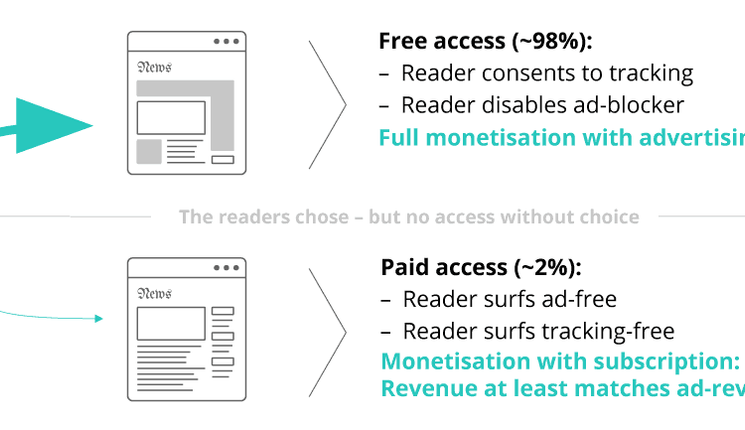 contentpass offers (cross-publisher) subscriptions for an ad- and tracking-free reading experience of ad-supported content. Readers get the choice to compensate publishers either with their data & attention or pay for access. Our solution enables publishers to comply with GDPR / CCPA and fully monetise 100% of their reach – including former ad-blocking traffic.