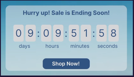 Example: “Only 6 hours left!” displayed during a seasonal sale ad.